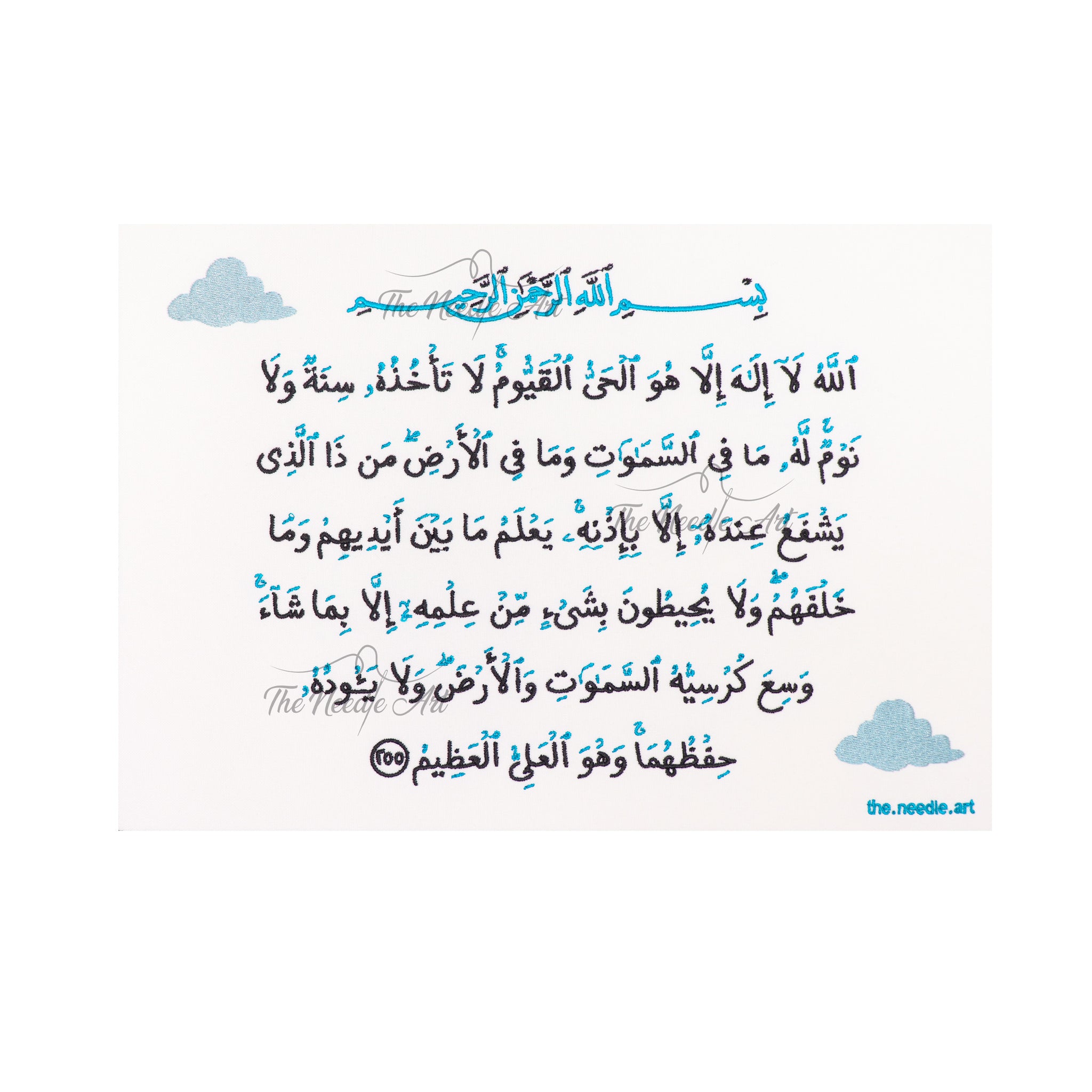- Ayat Al Kursi in Arabic calligraphy in the baby reception theme.